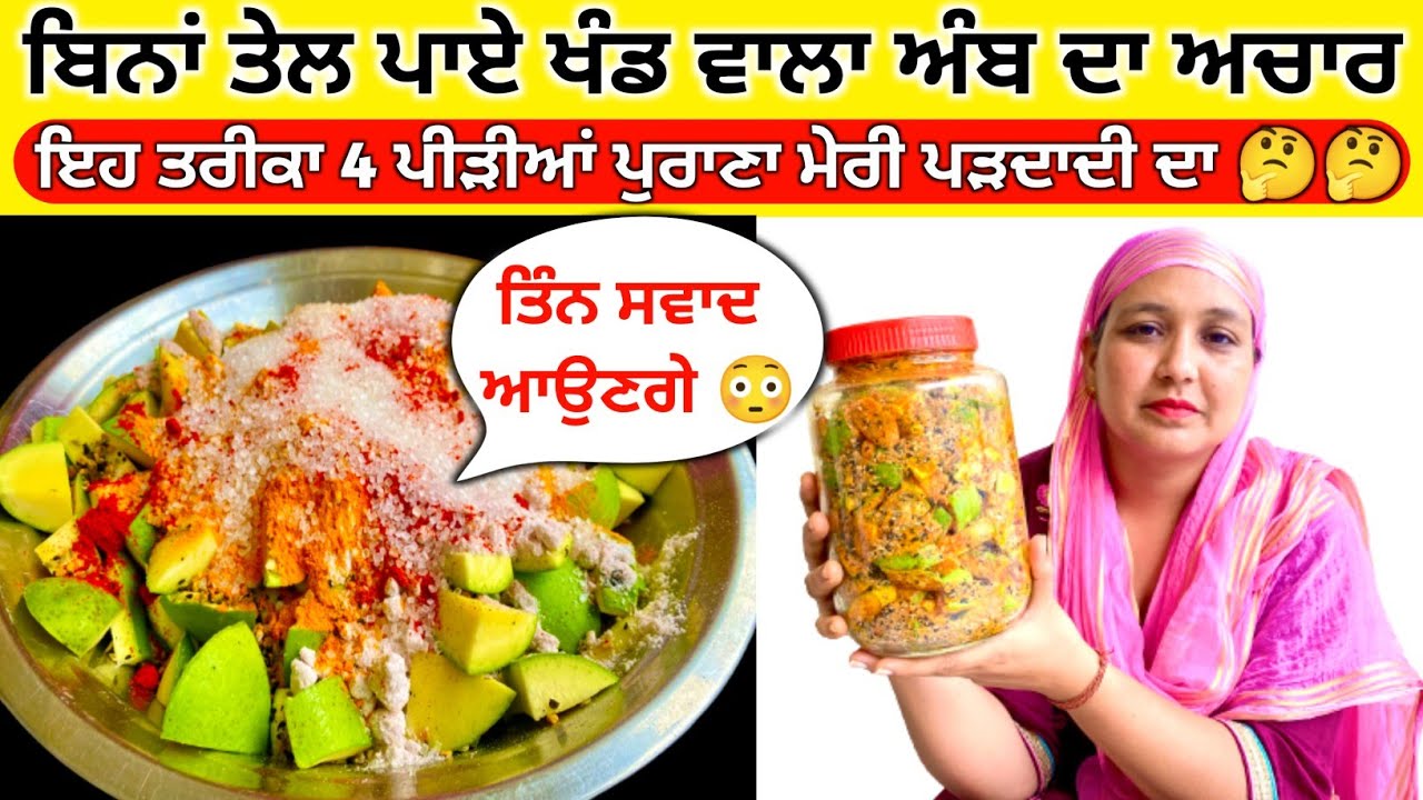 ਅੰਬ ਦੇ ਆਚਾਰ ਨੂੰ ਬਣਾਉਣ ਦਾ ਅਸਲ ਤਰੀਕਾ ਬਹੁਤ ਘੱਟ ਮਿਹਨਤ ਨਾਲ ਲਾਜਵਾਬ ਬਣੇ ਆਚਾਰ,ਅੰਬ ਦਾ ਆਚਾਰ ਜਿਸ ਵਿੱਚੋਂ ਆਉਣ ਤਿੰਨ ਸਵਾਦ #PunjabiAamKaAchar #AcharRecipeByMasalaKitchen #HowToMakePicklemango mango pickle recipe, pickle recipe pickle,kairi ka achar,punjabi aam ka achar,how to make mango pickle,chatpata aam ka achar recipe,achar kaise banaye,masala kitchen pickle recipe,mix pickles,aam ka khatta-meetha achar,achar by masala kitchen,mango chuteny,nylons pickles,punjabi style mango pickle,spicy raw mango pickle recipe,आम का अचार कैसे बनाएं,potli achar,amiya ka achar,potli achar sindhi recipes,bina dhoop aam ka achar,kacche aam ka achar,nepali achar,manog jam