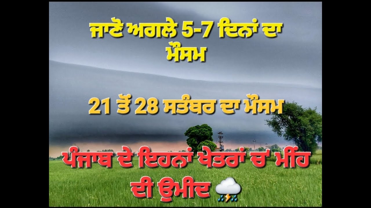 #ਤਾਜ਼ਾ_ਅਪਡੇਟ ਪੰਜਾਬ ਚ' ਮਾਨਸੂਨ ਦੇ ਮੀਂਹਾਂ ਦਾ ਆਖਰੀ ਦੌਰ 21 ਤੋਂ 28 ਸਤੰਬਰ⛈️ #weather #punjab #Rain #Thunderstorm #punjabweather