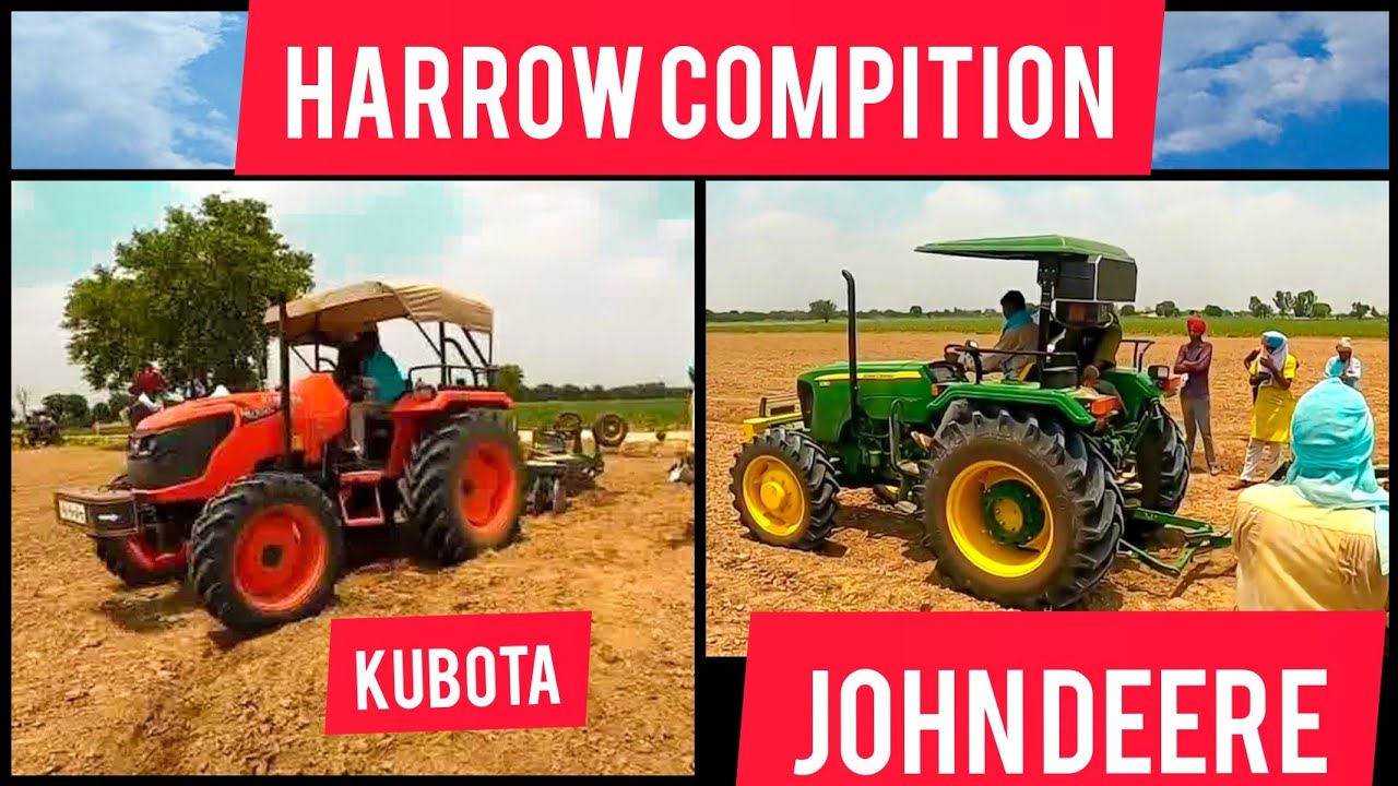 #kubota #johndeere #tractor Both the Kubota and the john deere tractor compete in the tractor four by four segment By attaching both the tractors with 18 disc harrows, diesel consumption will be extracted in front of one acre. Farmers' first choice is john deer but after this competition kubita may be their first choice Because Kubota can run every implement in less diesel consumption. Its performance is very good despite consuming less diesel. John deere works very well on heavy PTO implements. Result is also very good on cultivator. what you can better decide after watching this video is a long video on a completely second by second information you may interact even tractors with their looks but their performers get also interact you more in the field when a competition between the same configuration on both tractors or four by four especially in disc full opening the field will be judged in the diesel consumption also the farmers are satisfied with the less diesel consumption
