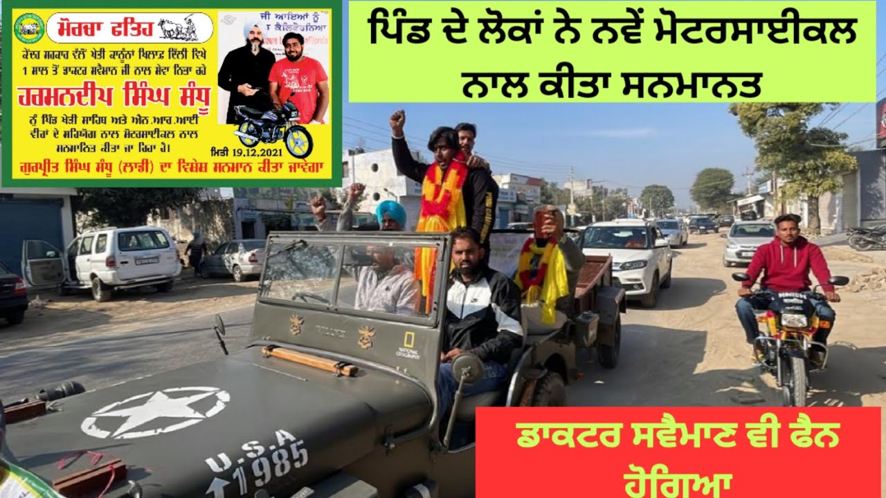 ਡਾਕਟਰ ਸਵੈਮਾਣ ਨਾਲ ਟਿਕਰੀ ਬਾਰਡਰ ਤੇ ਪੂਰਾ ਅੰਦੋਲਨ ਕਿਸਾਨਾਂ ਦੀ ਸੇਵਾ ਕੀਤੀ ਪਿੰਡ ਨੇ ਨਵੇਂ ਮੋਟਰਸਾਈਕਲ ਨਾਲ ਸਵਾਗਤ