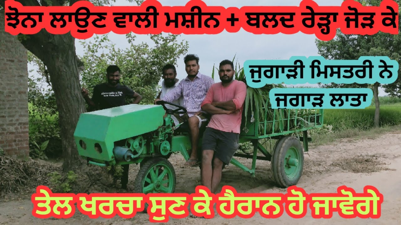 ਝੋਨਾ ਲਾਉਣ ਵਾਲੀ ਮਸ਼ੀਨ ਅਤੇ ਬਲਦ ਰੇੜ੍ਹਾ ਜੋੜ ਕੇ ਜੁਗਾੜੂ ਮਿਸਤਰੀ ਨੇ ਲਾਇਆ ਜੁਗਾੜ। 15-16 ਕੁਇੰਟਲ ਵਜਨ ਕੋਈ ਗੱਲ ਨੀ