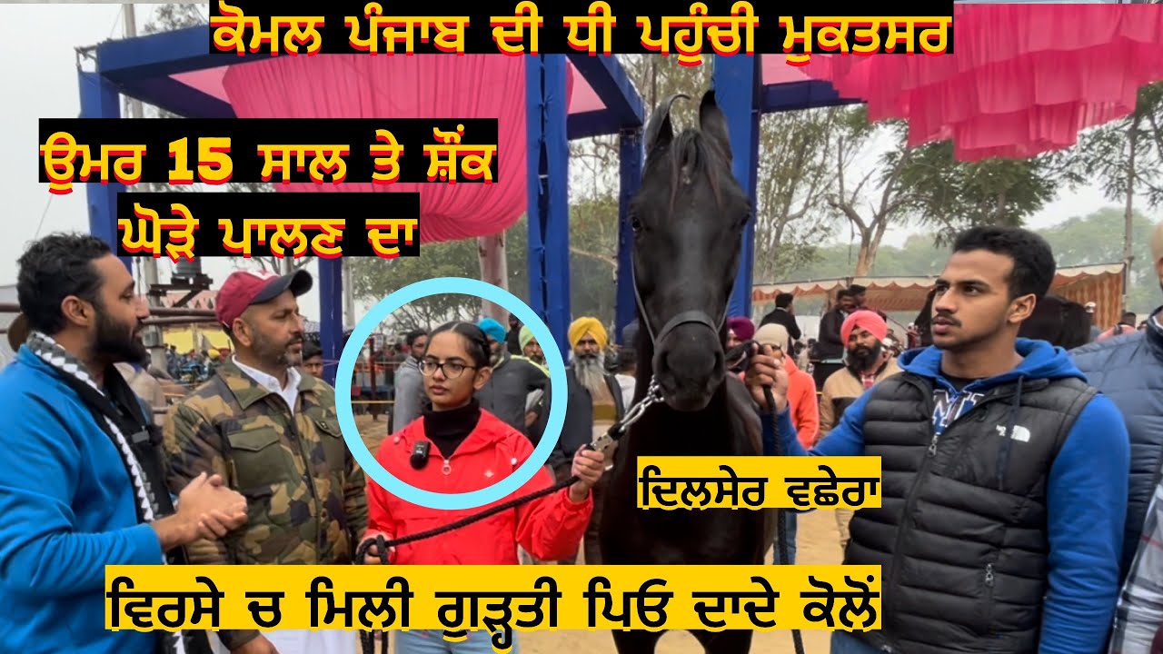 ਕੋਮਲ 15 ਸਾਲਾਂ ਦੀ ਕੁੜੀ ਦਸਵੀਂ ਦੀ ਵਿਦਿਆਰਥਣ ਮੁਕਤਸਰ ਮਾਘੀ ਮੇਲੇ ਤੇ ਪਹੁੰਚੀ ਆਪਣੇ ਘੋੜੇ ਘੋੜੀਆਂ ਲੈ ਕੇ