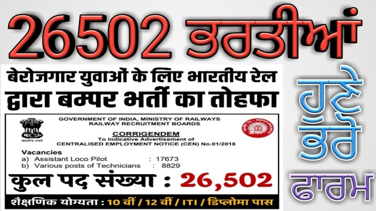 INDIAN RAILWAYS RECRUITMENT 2018 JOBS ALERT PUNJAB POLICE BHARTI NY RV MEDIA