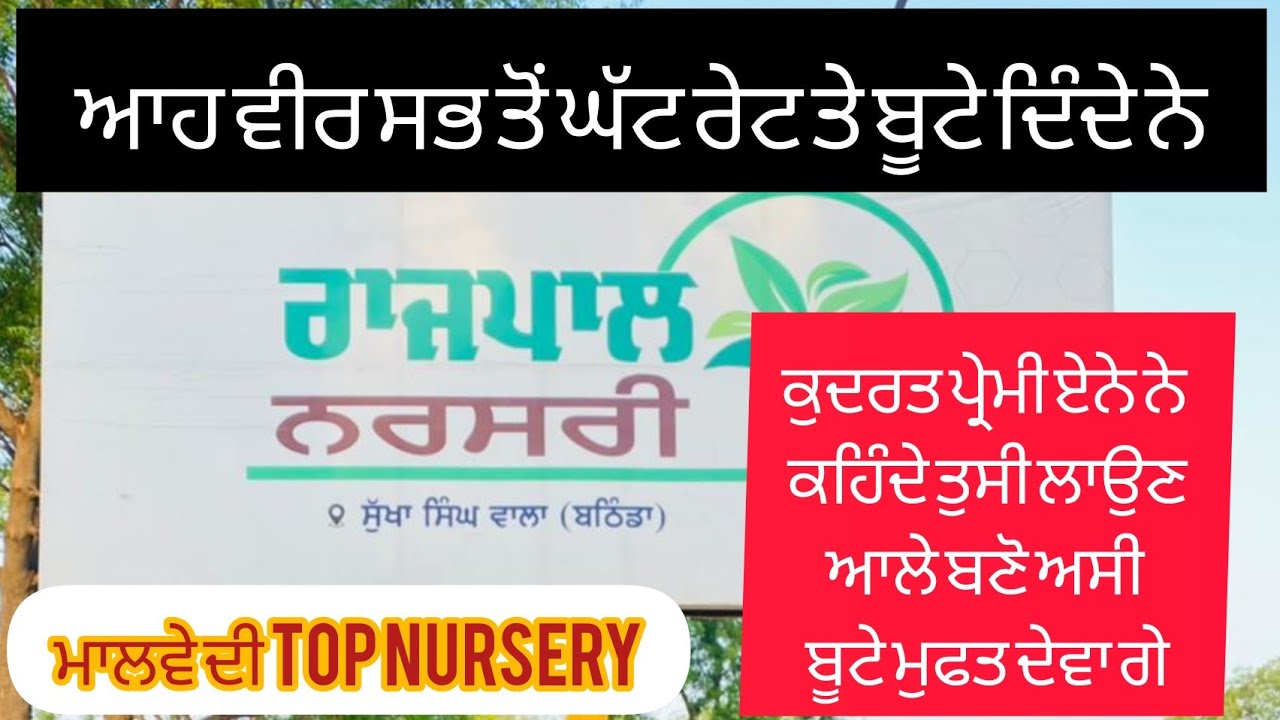 ਇਹ ਨਰਸਰੀ ਮਾਨਸਾ ਤੋਂ ਬਠਿੰਡਾ ਰੋਡ ਤੇ ਪਿੰਡ ਸੁੱਖਾ ਸਿੰਘ ਵਾਲਾ ਦੀ ਹੈ ਇਹਨਾ ਵੀਰਾਂ ਦੀ ਇਕ ਖਾਸੀਅਤ ਆ ਫਰੀ ਚ ਬੂਟੇ ਵੀ ਸਾਰੇ ਇਲਾਕੇ ਵਿਚ ਦਿੰਦੇ ਹਨ ਜੇਕਰ ਤੁਸੀਂ ਸਾਂਝੇ ਥਾਵੇਂ ਲਗਾਉਣੇ ਹਨ ਇਹਨਾ ਦੇ ਪਿੰਡ ਦੇ ਨੌਜਵਾਨਾਂ ਦੇ ਕਲੱਬ ਵਲੋਂ ਲਵਾਏ ਹੋਏ ਬੂਟਿਆਂ ਕਰਕੇ ਪਿੰਡ ਬਠਿੰਡਾ ਜਿਲੇ ਦਾ ਪਹਿਲਾ ਐਵਾਰਡ ਹਾਸਲ ਕੀਤਾ ਅਤੇ ਰਾਜਪਾਲ ਨਰਸਰੀ ਵਾਲਿਆਂ ਨੇ ਬੂਟਿਆਂ ਦੇ ਪੈਸੇ ਨਹੀਂ ਲਏ ਸਨ